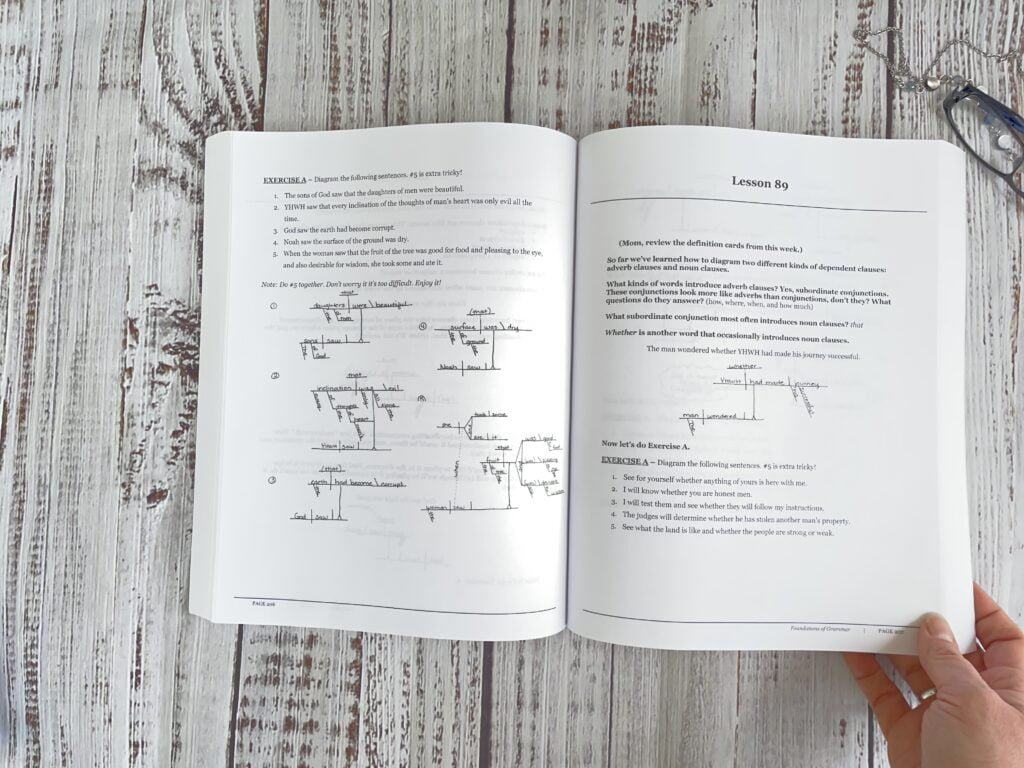 • Formal grammar instruction plus grammar and review of proper word usage, using sentences from Scripture.
